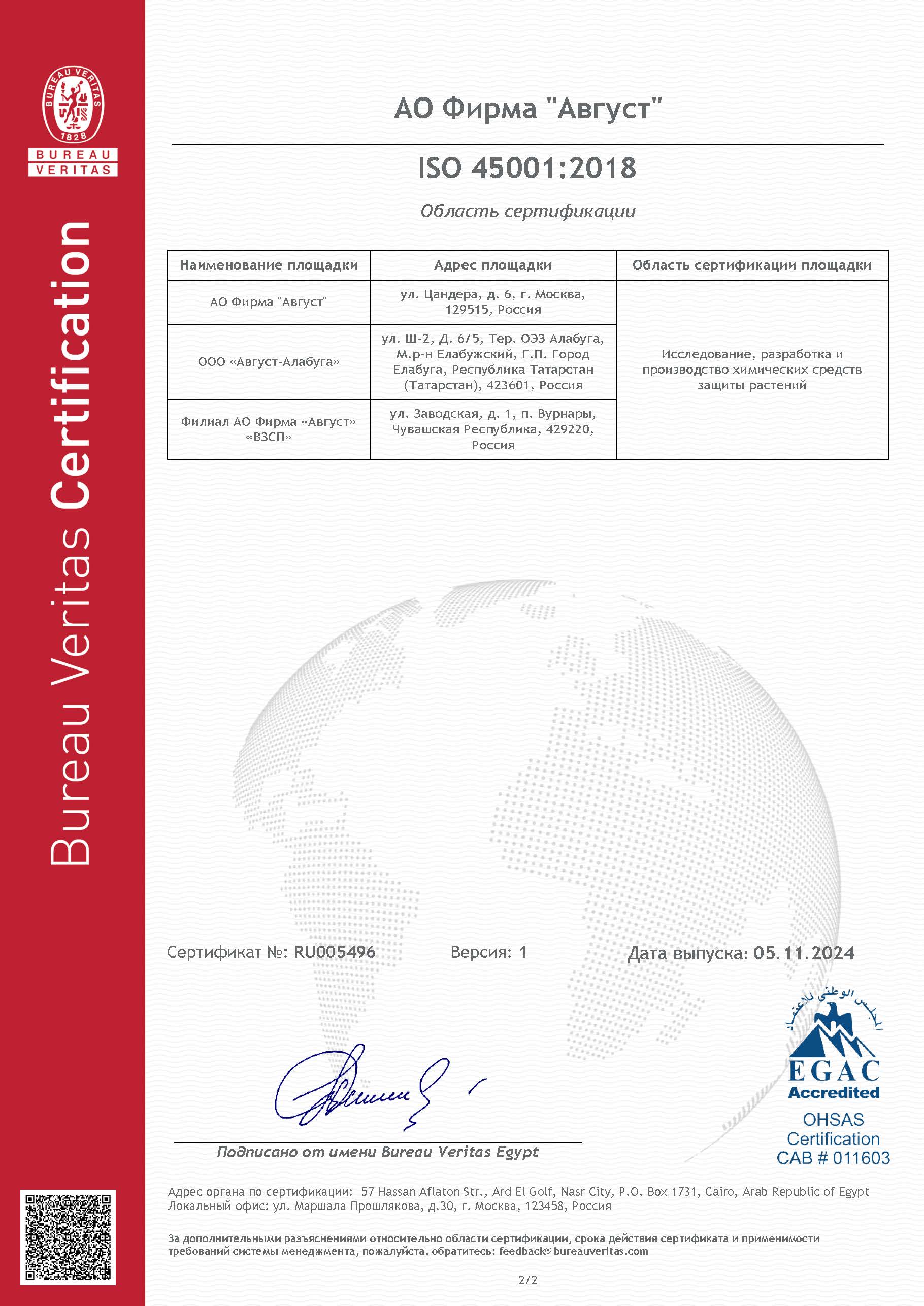 2018 წელს, სტანდარტების ცვლილების გამო, კომპანიამ წარმატებით გაიარა ხელახალი სერტიფიცირება ISO 9001:2015, ISO 14001:2015 და ISO 45001:2018 მოთხოვნების შესაბამისად (შეწყვეტილი OHSAS 18001 სტანდარტის ჩანაცვლებით).