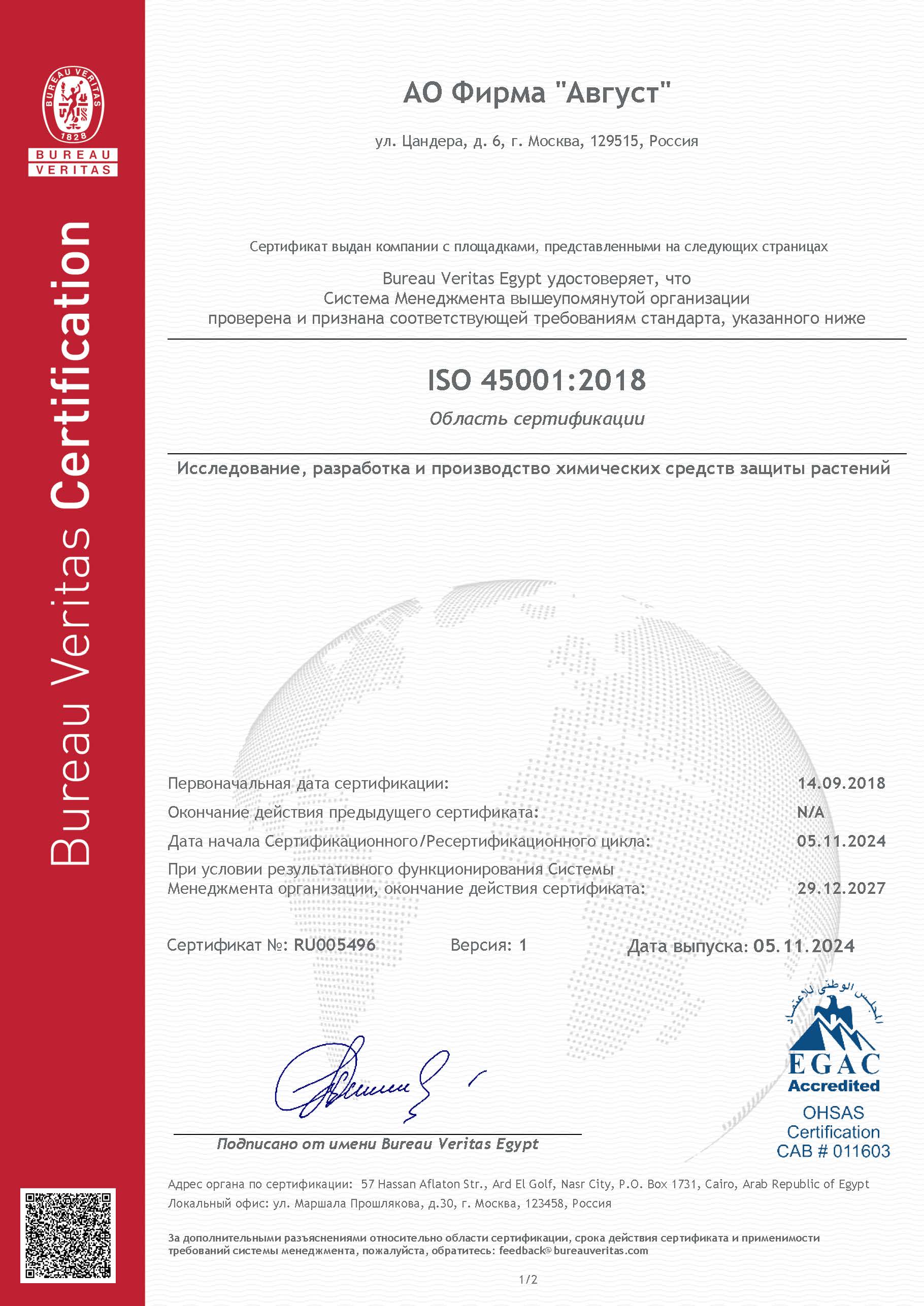 ამ დროისთვის August Company JSC-ს აქვს კორპორატიული ინტეგრირებული მართვის სისტემა, რომელიც შეესაბამება საერთაშორისო სტანდარტებს ISO 9001, ISO 14001, ISO 45001 და თავად კომპანიის მიერ დადგენილ მოთხოვნებს ხარისხის, გარემოს დაცვის, შრომის უსაფრთხოებისა და ჯანმრთელობის სფერო.