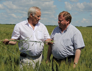 Н. А. Жернов (справа) и А. В. Агибалов на пшеничном поле
